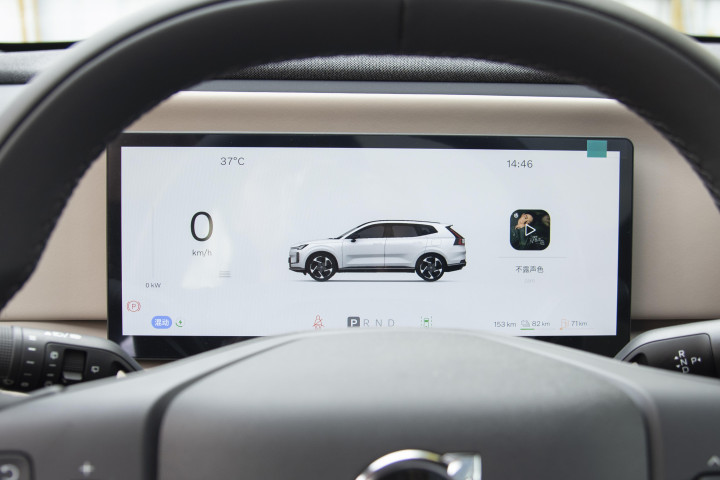 内部硬件设计侧倾电驱特色格调,皮质多功能方向盘为设计框架,这种方向盘不仅具备多功能的操作特性,还特别增添加热功能支持。除此之外,车辆采用了电子式怀挡附着的拨杆式换挡设计,这种独特的设计方式巧妙地简化了操控硬件的展示数量,便于塑成简洁清爽的内饰氛围,让驾驶者在车内能够感受到一种简约而不失高雅的格调。同时,随着电控化的不断发展,这种换挡设计还带来了灵便的手感,驾驶者在操作换挡拨杆时,能够感受到顺滑且轻松的操控体验。在屏幕设计上,车辆对尺寸进行了显著提升。配备了12.3英寸的仪表以及15.4英寸的中控屏,与常见电驱设计所采用的10.25英寸仪表和14.6英寸中控屏组合相比,明显大了一圈。这样大尺寸的屏幕组合,能够为驾驶者提供更加清晰、丰富的信息展示。不过,考虑到这款车是以C级SUV的框架来打造的,它确实需要更大规格的屏幕来凸显自身的特点。毕竟,车辆后方的中控台面更为宽阔,如果屏幕尺寸过小,表现力不足的话,那么车辆整体所应具备的大气感将会被削弱不少。